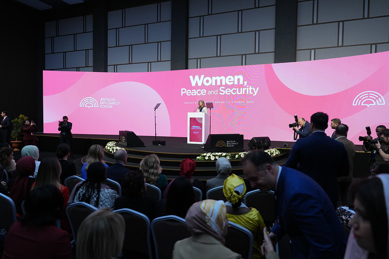 “Dünya, artan çatışmalar ve derinleşen siyasi ayrışma ile karakterize edilen bir dönemden geçiyor. Uluslararası kurallara dayalı bir düzen için yapılan çabalarda kesintiler yaşanıyor ve bu durum küresel sistem üzerinde sarsıcı etkilere neden oluyor. Ardışık çatışmalara barışçıl çözümler bulunamaması, uluslararası toplumun fay hatlarını derinleştiriyor ve dünyayı daha büyük çaplı krizlerin eşiğine getiriyor. Bu süreç, milyonlarca masum insanın temel haklarına ve özgürlüklerine zarar veriyor. Bu küresel şiddet döngüsüne karşı barış diplomasisi hayati öneme sahiptir. Bu bağlamda, Türkiye’nin her zaman desteklediği görüşle, barış süreçlerinde kadınların rolü üzerinde odaklanacak olan oturum, Türkiye Cumhurbaşkanı’nın eşi tarafından düzenlendi.”