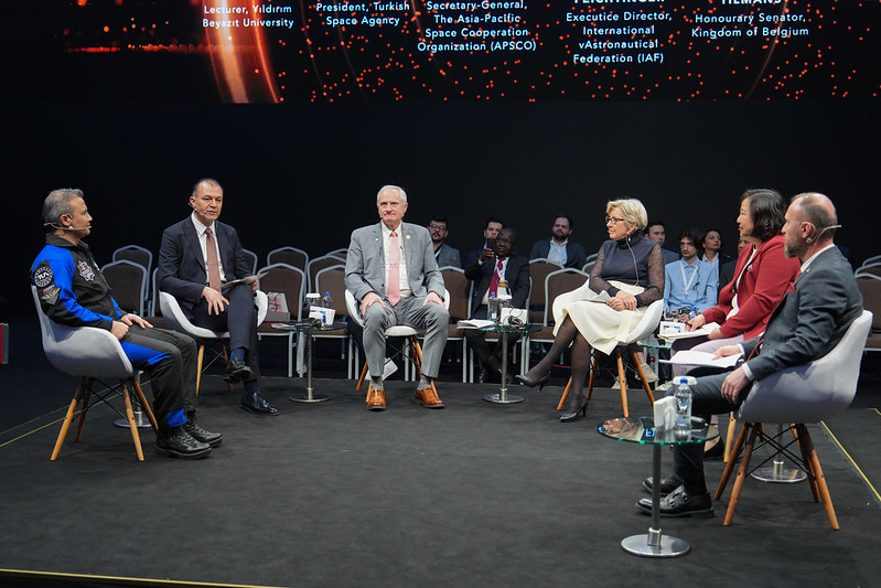 “Uzay Diplomasisi, Uzay Ekonomisi ve Uzay Hukuku’nun etkileşimi, insanlığın uzay yolculuğunun geleceğini şekillendiren kritik bir kesişim olarak ortaya çıkıyor. Bu panelde, uluslararası ilişkilerin, ekonomik düşüncelerin ve hukuki çerçevelerin, uzayın sonsuzluğunda bir araya geldiği çok yönlü bir alanı keşfetmek üzerine konuşuldu.”